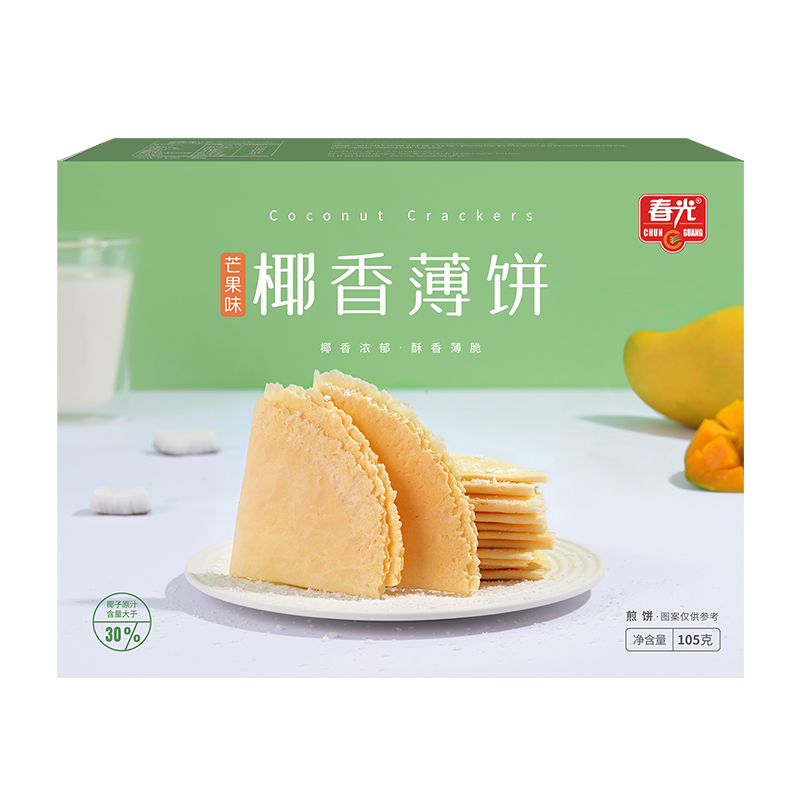 椰子汁(35.3%)、小麥粉、白砂糖、人造奶油、食用調(diào)和油、雞蛋、食品添加劑(單,雙甘油脂肪酸酯)、食用鹽。