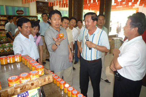羅保銘省長等一行抵達我廠后,先后參觀了椰子粉生產車間、糖果生產車間、辣椒醬生產車間、產品展銷廳等,省長每到一處都仔細聽取匯報,了解車間的生產情況、產品的銷售情況以及公司發(fā)展過程中遇到的困難。