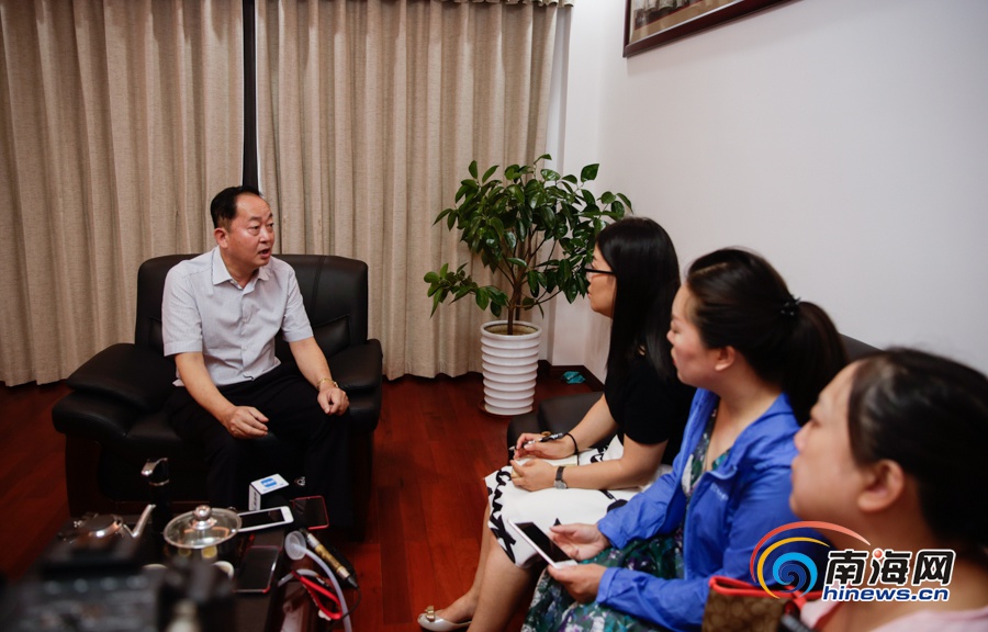 海南春光食品有限公司董事長(zhǎng)兼總經(jīng)理黃春光接受記者采訪。南海網(wǎng)記者劉洋攝