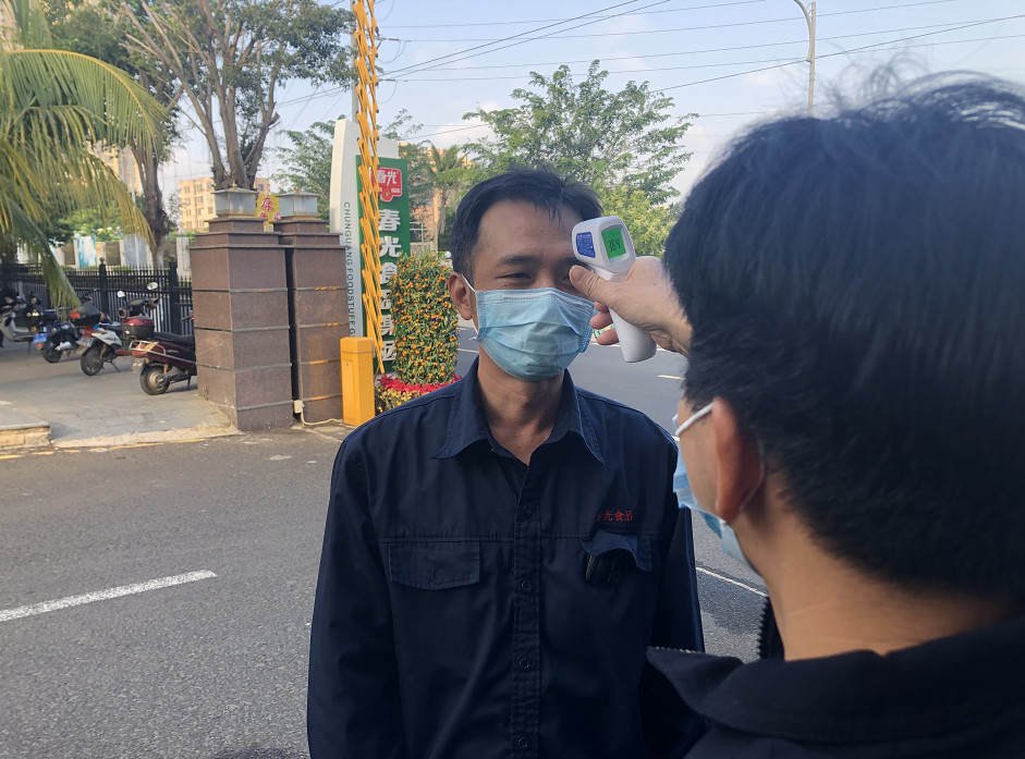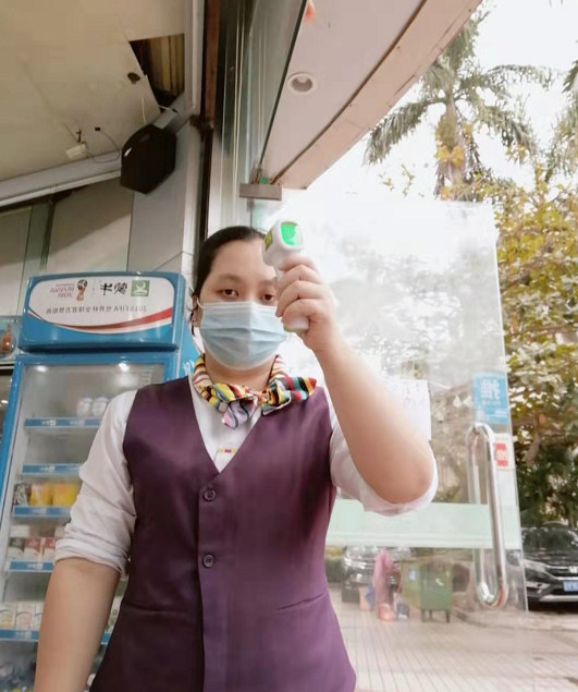在總公司,每天對辦公地點(diǎn)進(jìn)行全面消毒,對出入員工進(jìn)行體溫測量。