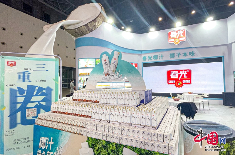 在參展商品中,春光食品帶來(lái)的春光椰汁、一口鮮氣椰汁備受矚目。