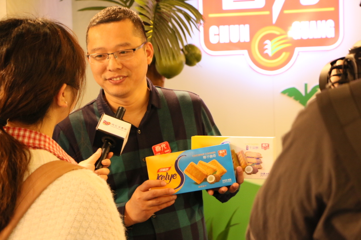 春光食品新品可麗思系列餅干一經(jīng)亮相便成為炙手可熱的“明星”,受到全國(guó)多方客商的關(guān)注。在近萬種新產(chǎn)品相繼亮相之際,可麗思系列餅干脫穎而出吸引了眾多食品行業(yè)以及成都當(dāng)?shù)孛襟w的采訪報(bào)道。“感覺每一滴椰香和奶香都糅合在面粉的麥香里,酥脆可口很上癮”,很多人表示吃了還想吃?!按汗獾倪@款曲奇餅干不遜色于皇冠丹麥曲奇,我相信年輕人一定會(huì)喜歡?!眮碜哉憬慕?jīng)銷商對(duì)這款新品給予足夠的信心。春光食品展區(qū)上人潮擁擠,品鑒不斷,憑借其首款椰子味曲奇餅干的亮點(diǎn)成為本屆糖酒會(huì)的爆品,在糖酒會(huì)上掀起一輪熱潮。